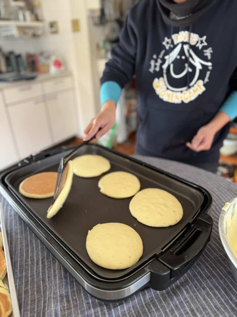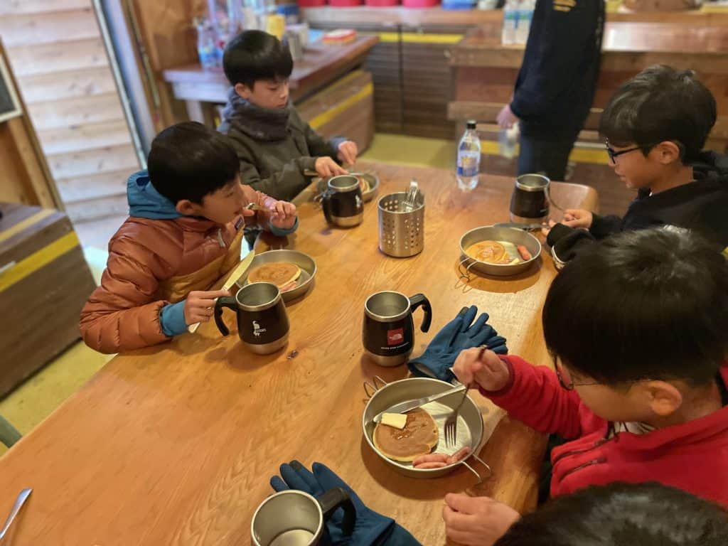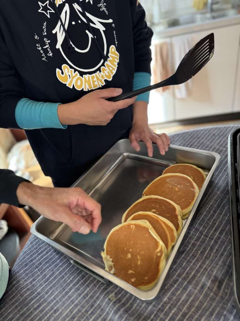 先輩たちが苦闘しながら作ったパンケーキをみんなんでいただきます!