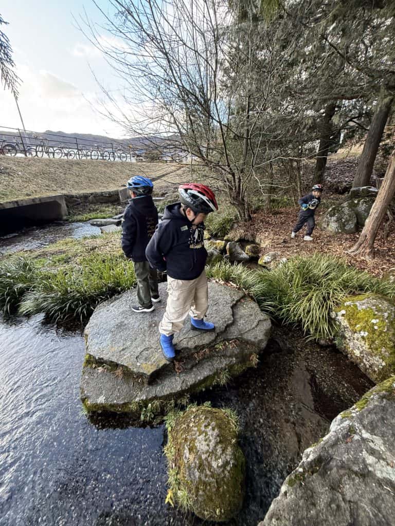 大清水に到着。ここで水汲みをします。流石に寒くて水遊びをする事もなくすぐに退散です。ちなみに夏はこの水場で修行ごっこをやったり黒曜石を探したりして遊びます。