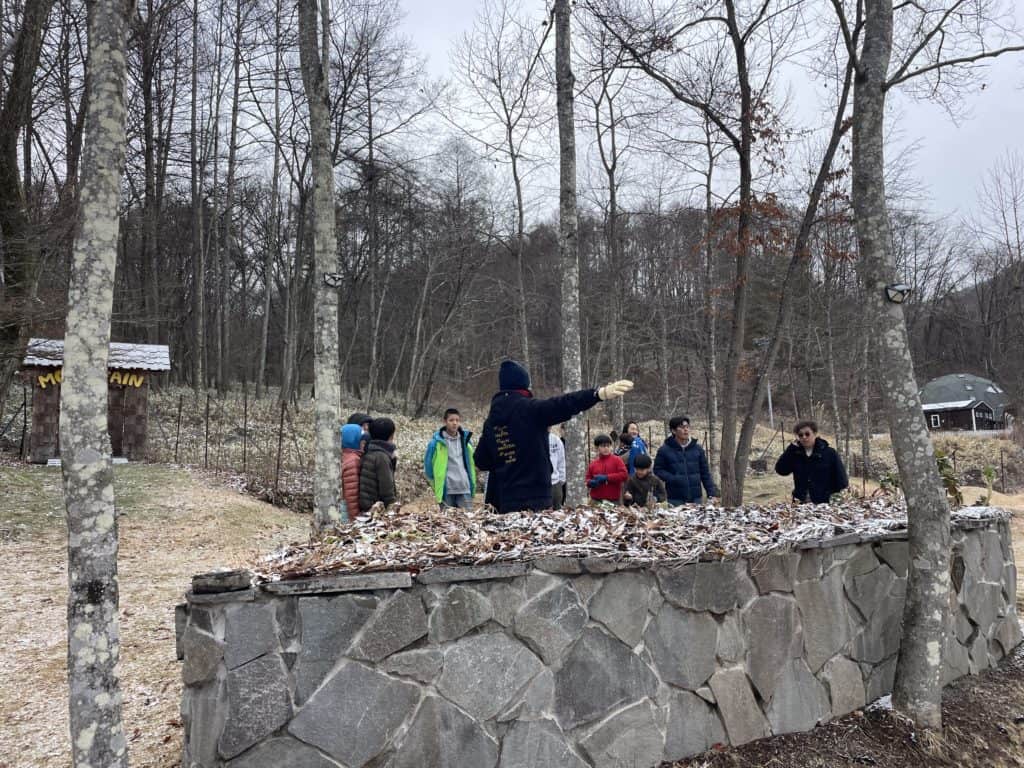 小雪がちらつく中、3719に到着し、施設のご案内をさせていただきました。夏に比べると少し寂しい景色ではありますが、今日からここで4日間みんなで過ごしますので、どうぞよろしくお願いします!