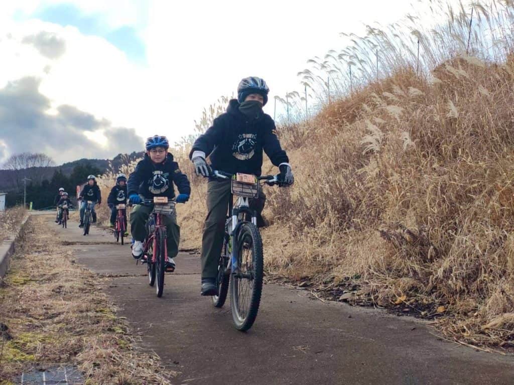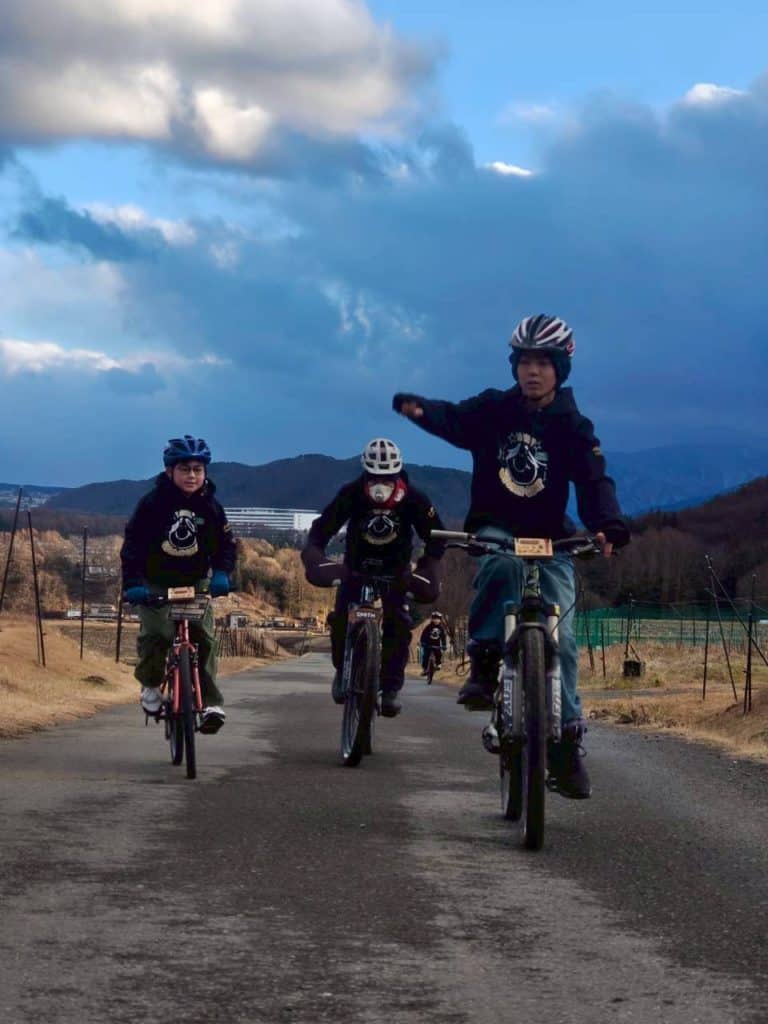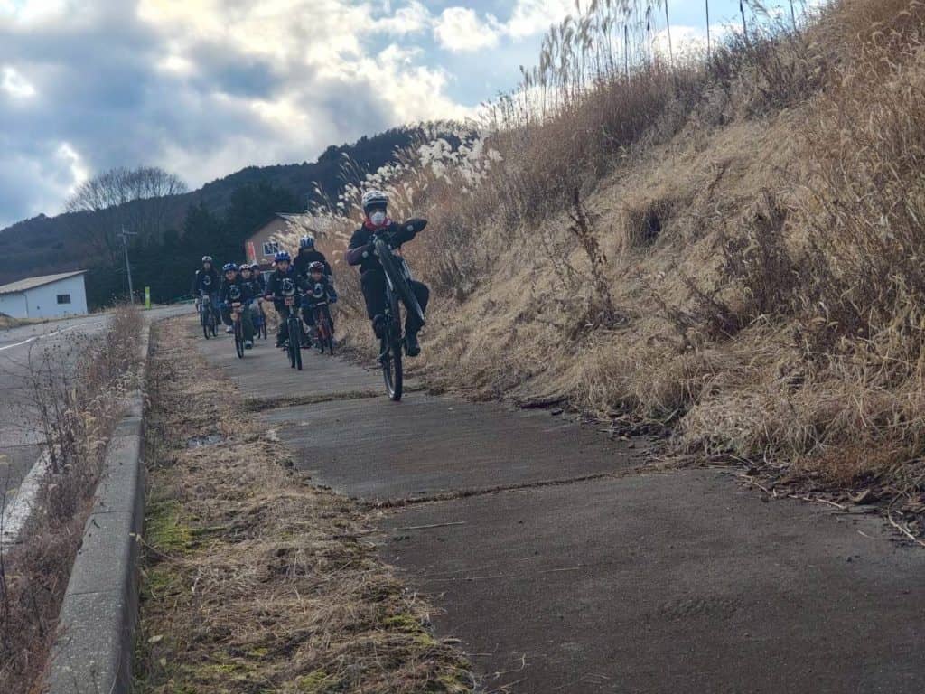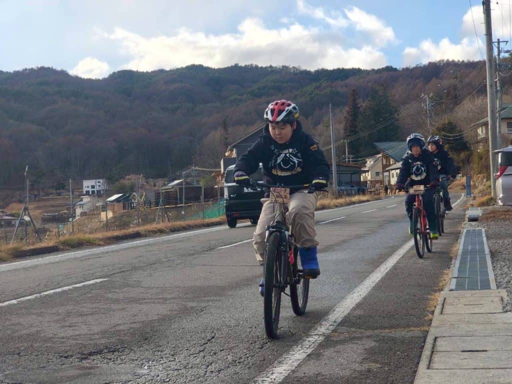寒空の下、一斉にスタート!寒すぎて呼吸もおかしくなるし、手足も冷たくなるし大変!でもこんなに必死にペダルを漕いで走る経験、そんなにないと思うので頑張れ!
