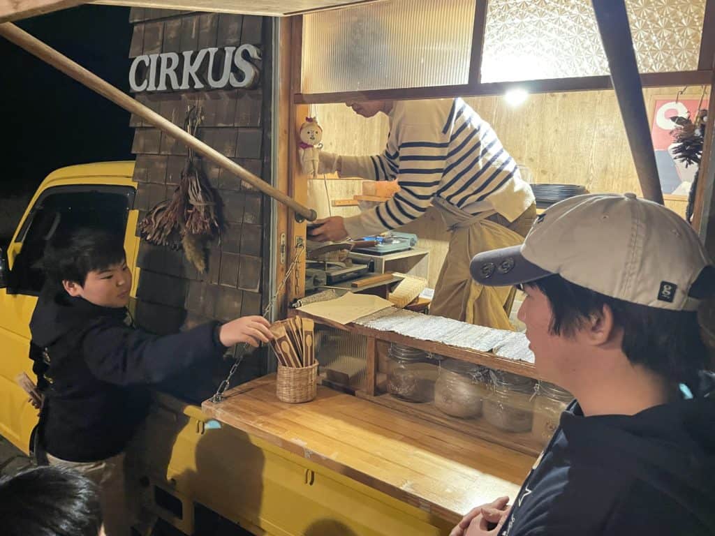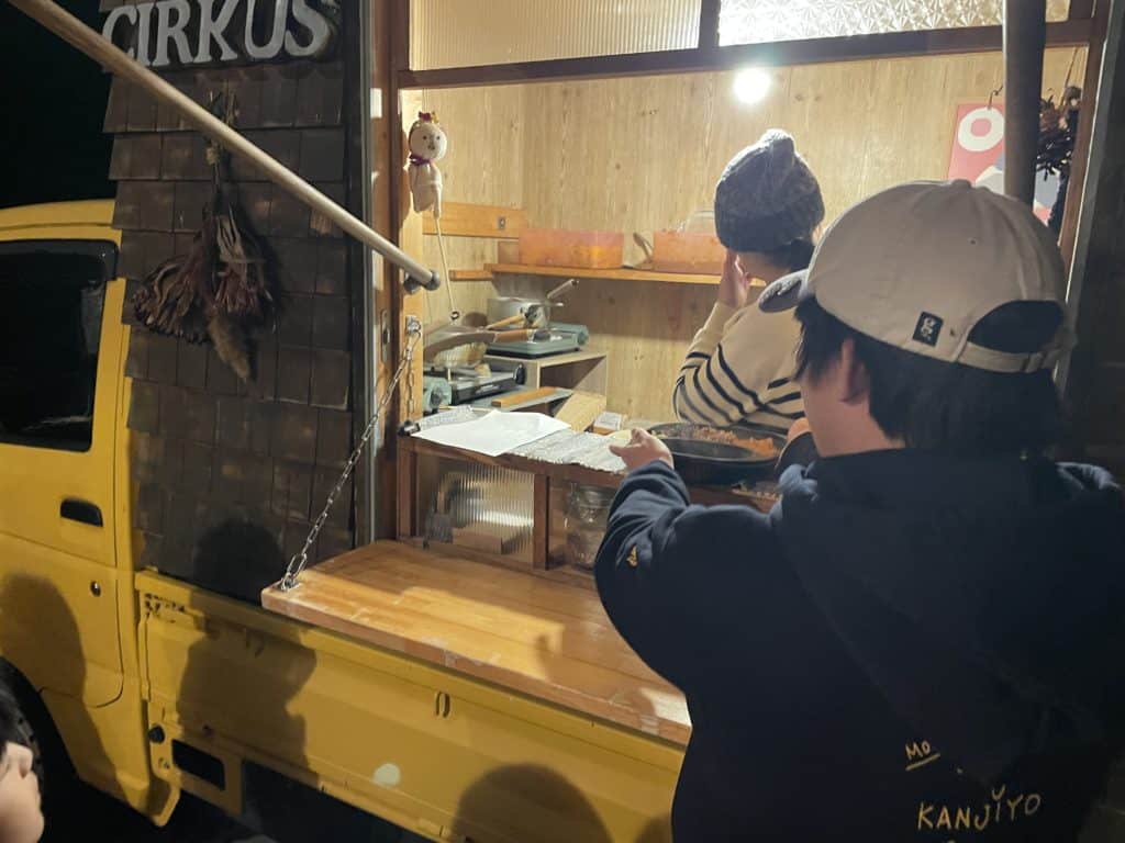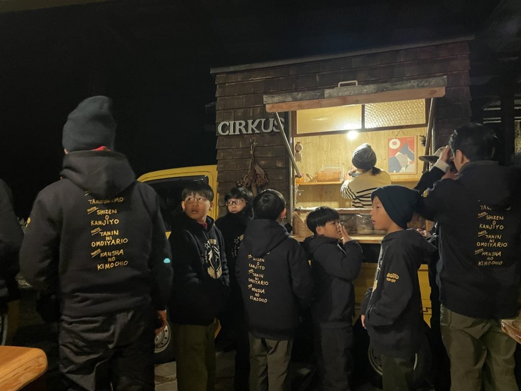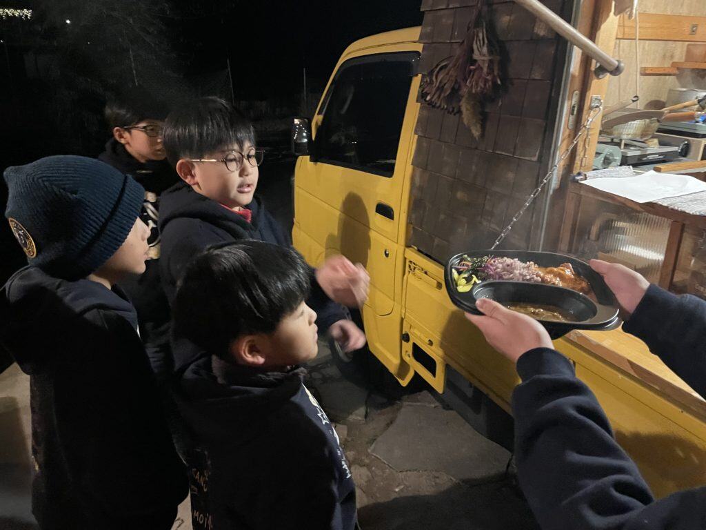 夜は、冬の少年キャンプ恒例「チルクスのりちゃん」のチルクスカレー!いつものフードトラックで登場です。